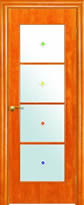 Отличительной особенностью серии Дера Модерн это использование художественного стекла с фьюзингом. Так же в основе дверей Деры Модерн лежит щитовая конструкция с износостойким покрытием ПВХ, что создает вид плоской двери. Внутри обвязка из переклеенных хвойных пород древесины и сотовое наполнение.